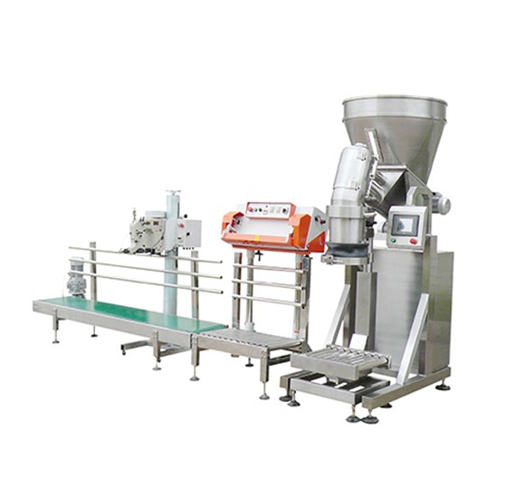 功能:该机与缝包机组配合可自动完成计量、夹袋、充填、封口、缝包、传送等工作。
